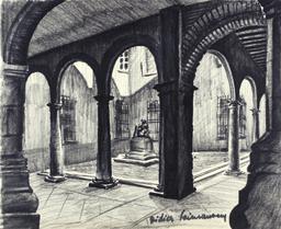[Perpignan. Patio Hôtel de Ville. Statue Maillol La Méditerranée] / lithographie de Didier Sainsauveur