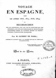 Voyage en Espagne dans les années 1816, 1817, 1818, 1819 ou recherches sur les arrosages, sur les lois et coutumes qui les régissent... / par M. Jaubert de Passa