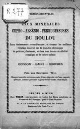 Pyrénées-Orientales. Eaux minérales du Boulou cupro-arsénio-ferrugineuses...