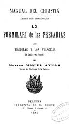 Manual del christiá ahont son continguts lo formulari de las pregarias, las epistolas y los evangelis en català y en francés / per Mossen Miquel Aymar