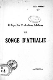 Critique des traductions catalanes du "Songe d'Athalie". Critique des traductions catalanes du "Songe d'Athalie"