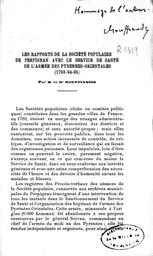 Les Rapports de la Société Populaire de Perpignan avec le service de santé de l'armée des Pyrénées-Orientales, 1793-94-95...