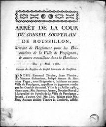 Edit du Roy ; pour l'establissement d'un hôpital general en la ville de Perpignan, & union dudit hôpital à celuy de la Misericorde. : Du mois d'avril 1686.
